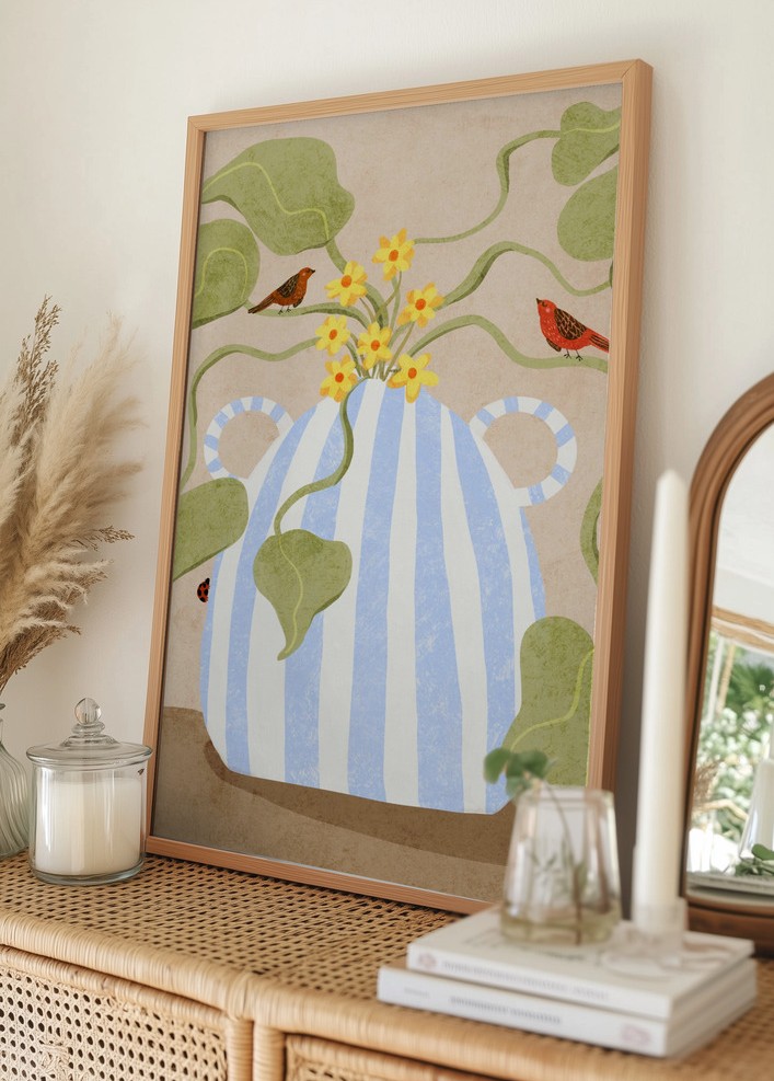 Leaves In a Pot With Birds Póster (21x29.7 cm (A4))