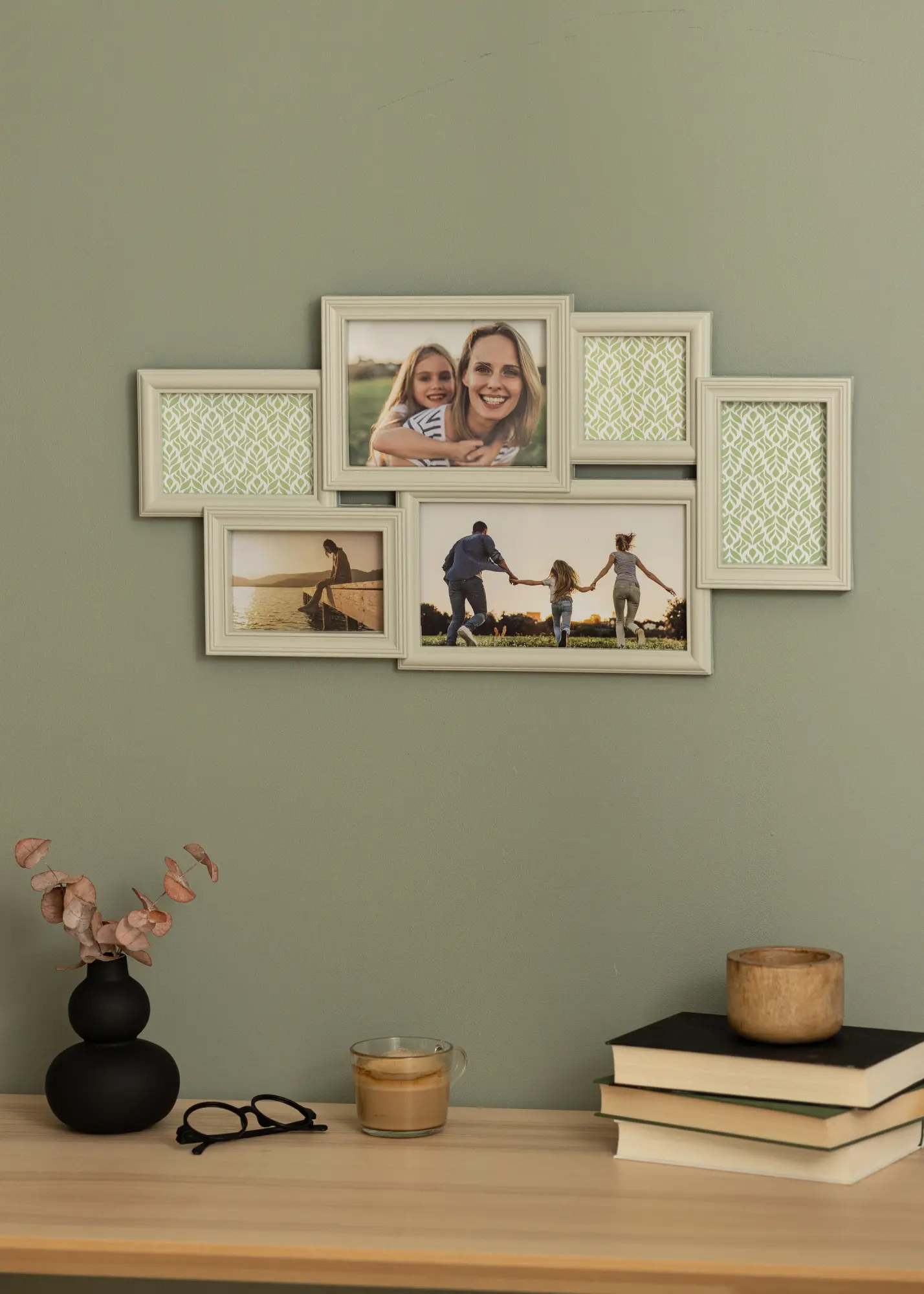 Esta é uma moldura de colagem que acomoda 6 imagens em diferentes formatos, o que dá à moldura uma expressão emocionante que atrai olhares. Graças ao sofisticado tom de cinzento claro, esta moldura para quadros é fácil de combinar com outras molduras, mas também funciona muito bem pendurada sozinha. A moldura é montada na parede na posição horizontal.
