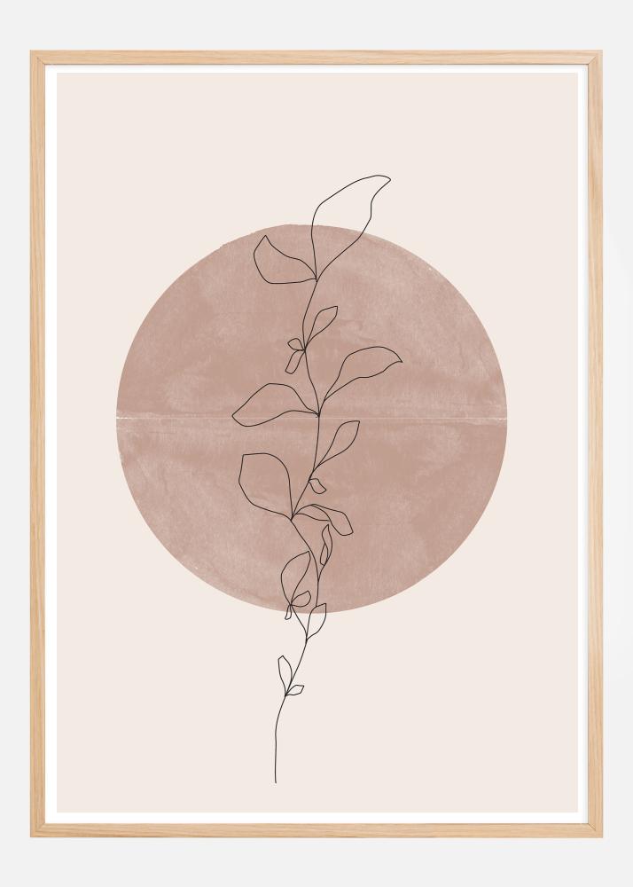 Este cartaz apresenta uma delicada ilustração de linha de um ramo florido, cujos contornos contrastam com um grande círculo pintado em um tom terroso e calmante. O contraste entre o motivo floral minimalista e a cor de fundo poderosa cria uma dinâmica interessante que é tanto calmante quanto esteticamente atraente.