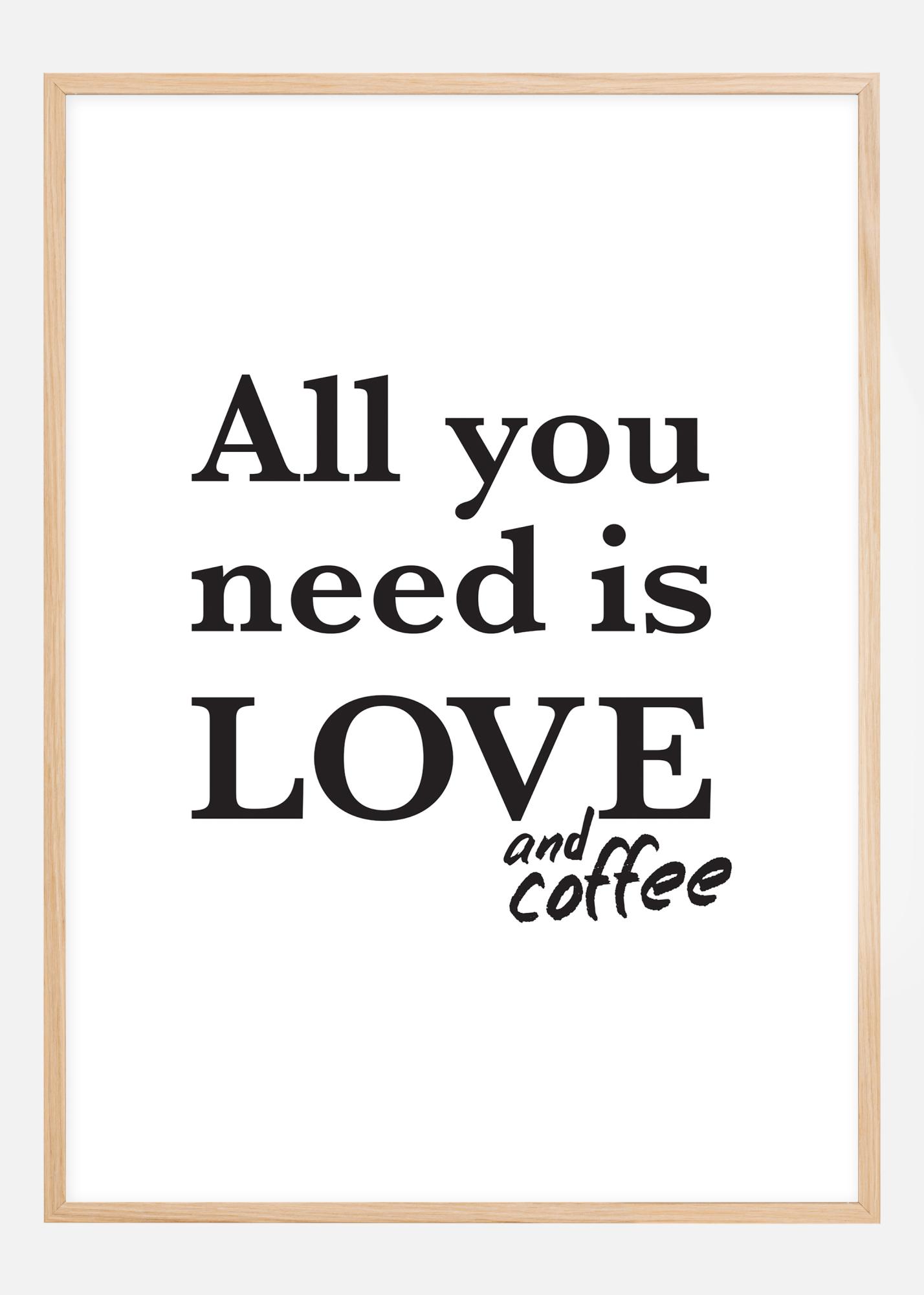 Tudo o que precisa na vida é amor. E café, é claro! Este charmoso póster será um belo complemento para a decoração da cozinha em casa ou no trabalho. O póster é branco com uma impressão em preto na forma do texto "All you need is love and coffee", dando a sensação de que "and coffee" foi escrito posteriormente. O design preto e branco combina bem com uma moldura elegante na sua cor favorita.