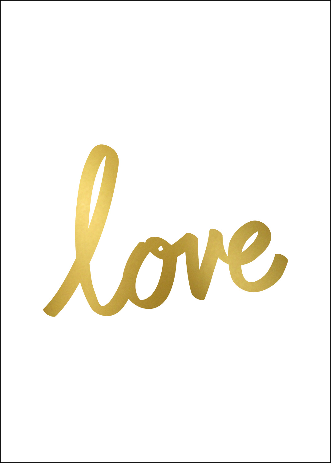 Menos é realmente mais ao olhar para este elegante póster em branco e dourado. O póster é muito elegante, com um fundo branco e uma impressão com o texto "Love" escrito com letras sinuosas e suaves. Complemente com uma moldura dourada clara para realçar ainda mais o dourado. Disponível em vários tamanhos e faixas de preço.