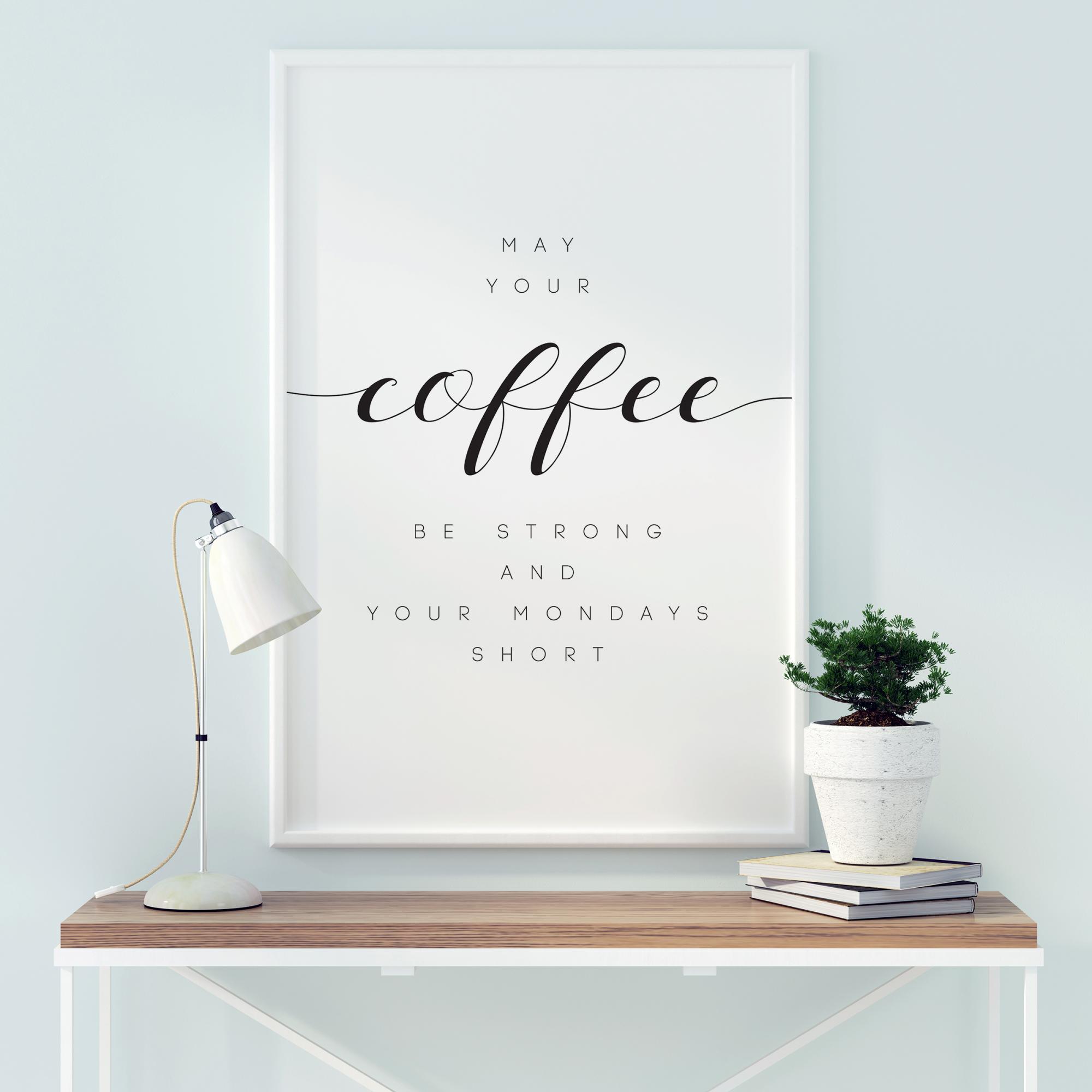 O póster é um lembrete de como você deve começar suas manhãs com um bom café. Uma impressão motivacional ideal para aqueles que procuram um humor inteligente. Essa imagem de café relacionável fará com que os convidados e a família riam. Pendure-a em sua cozinha e desfrute do seu bom café.
