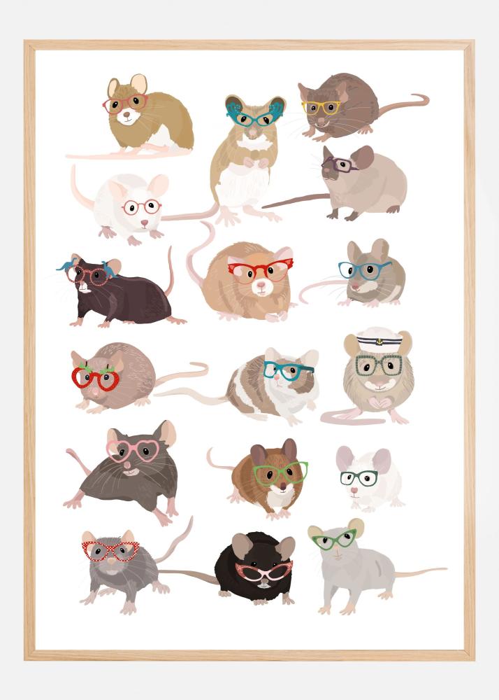 Mice In Glasses Póster (21x29.7 cm (A4))