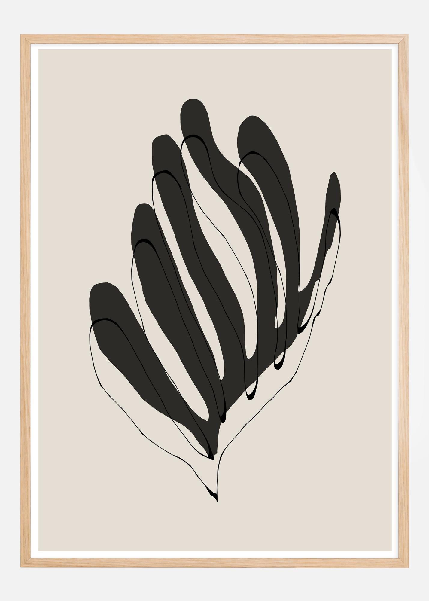 Este pôster emana uma sensação de arte moderna com sua interpretação abstrata de flores e natureza. As formas negras ondulantes que se erguem lembram pétalas de flores em uma composição incomum, mas cativante. Este design minimalista utiliza uma paleta de cores limitada ao preto contra um fundo quente off-white, proporcionando um forte contraste que faz a ilustração sobressair de forma elegante.