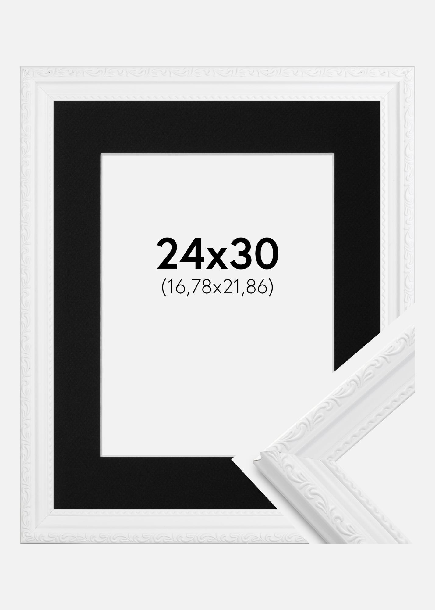 Moldura Abisko Branco 24x30 cm - Passe-partout Preto 7x9 inches