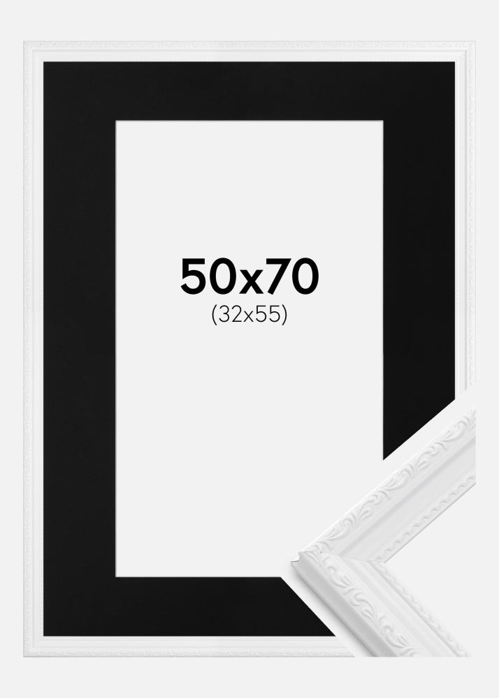 Moldura Abisko Branco 50x70 cm - Passe-partout Preto 33x56 cm