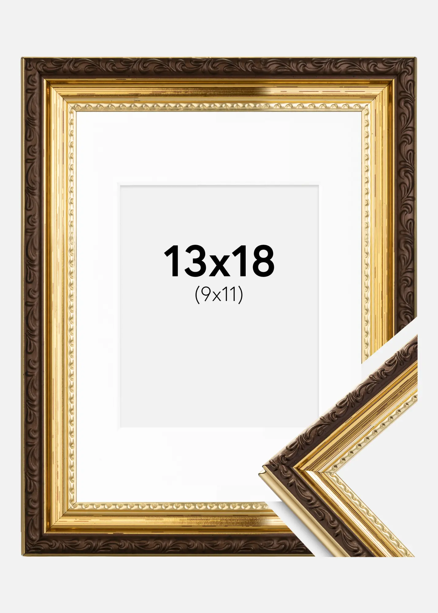 Moldura Abisko Dourado 13x18 cm - Passe-partout Branco 10x12 cm