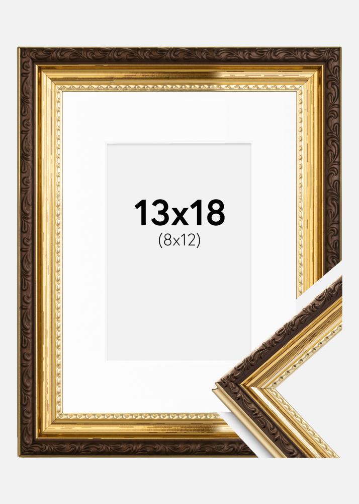 Moldura Abisko Dourado 13x18 cm - Passe-partout Branco 9x13 cm