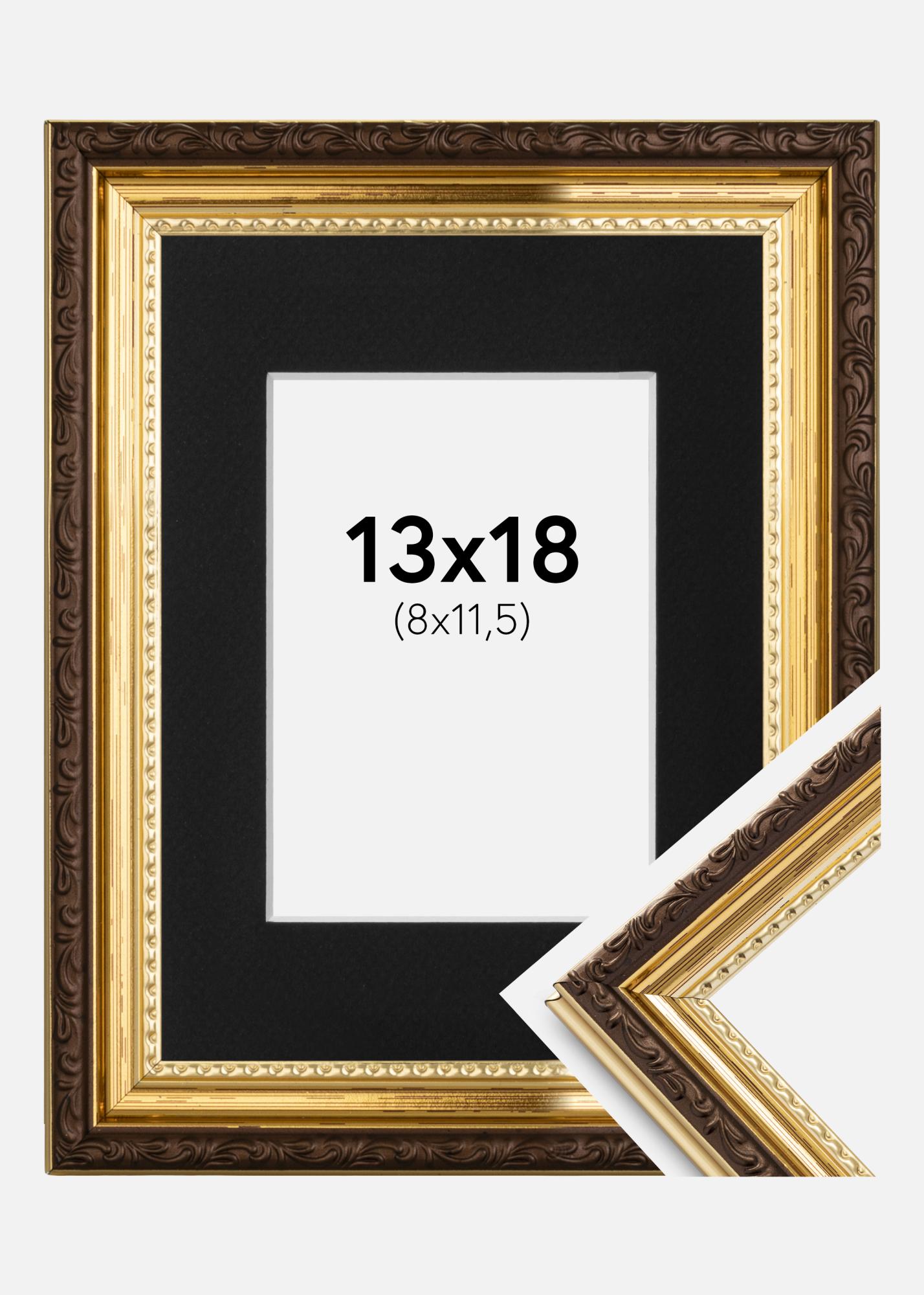 Moldura Abisko Dourado 13x18 cm - Passe-partout Preto 9x12 cm