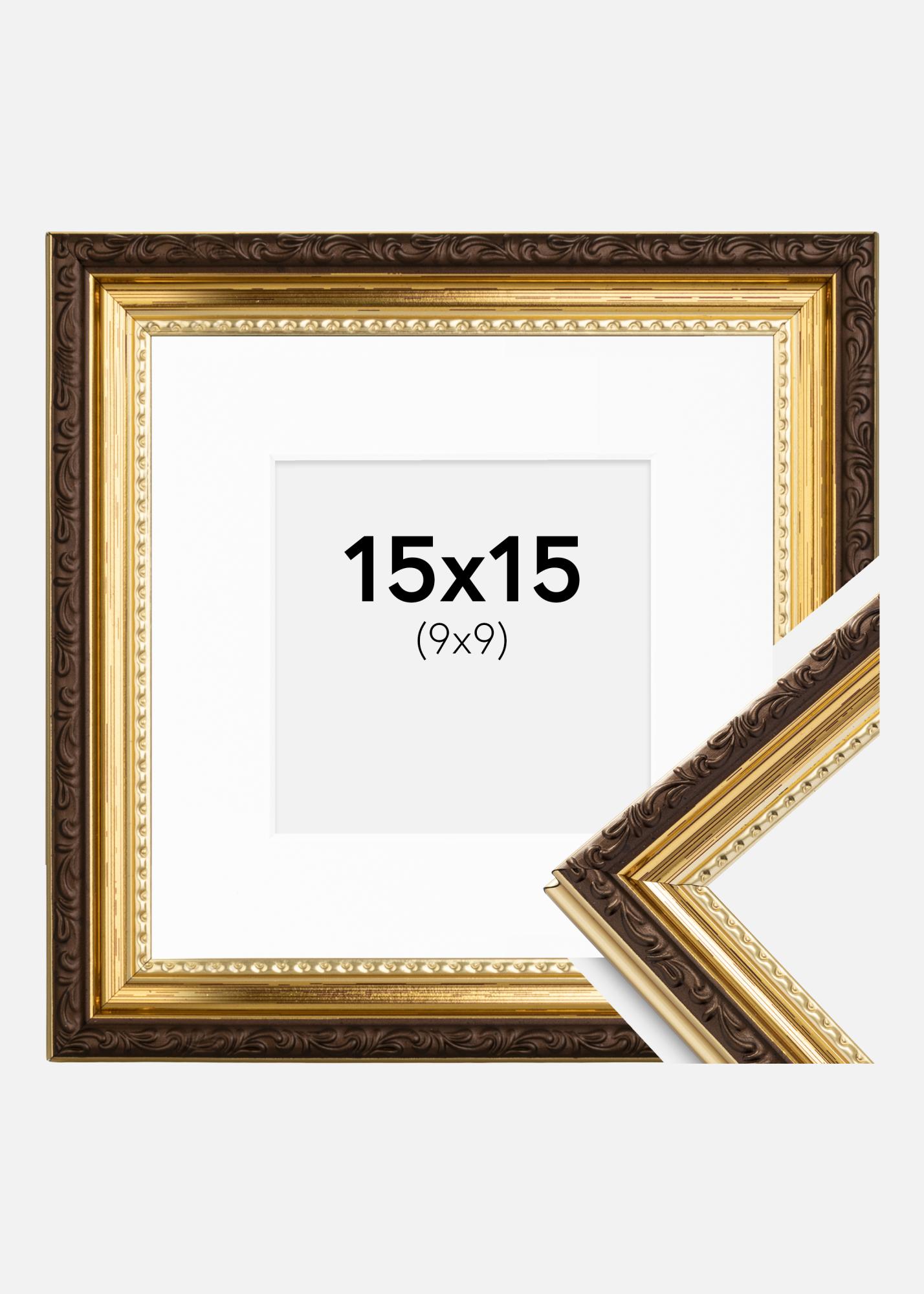 Moldura Abisko Dourado 15x15 cm - Passe-partout Branco 10x10 cm