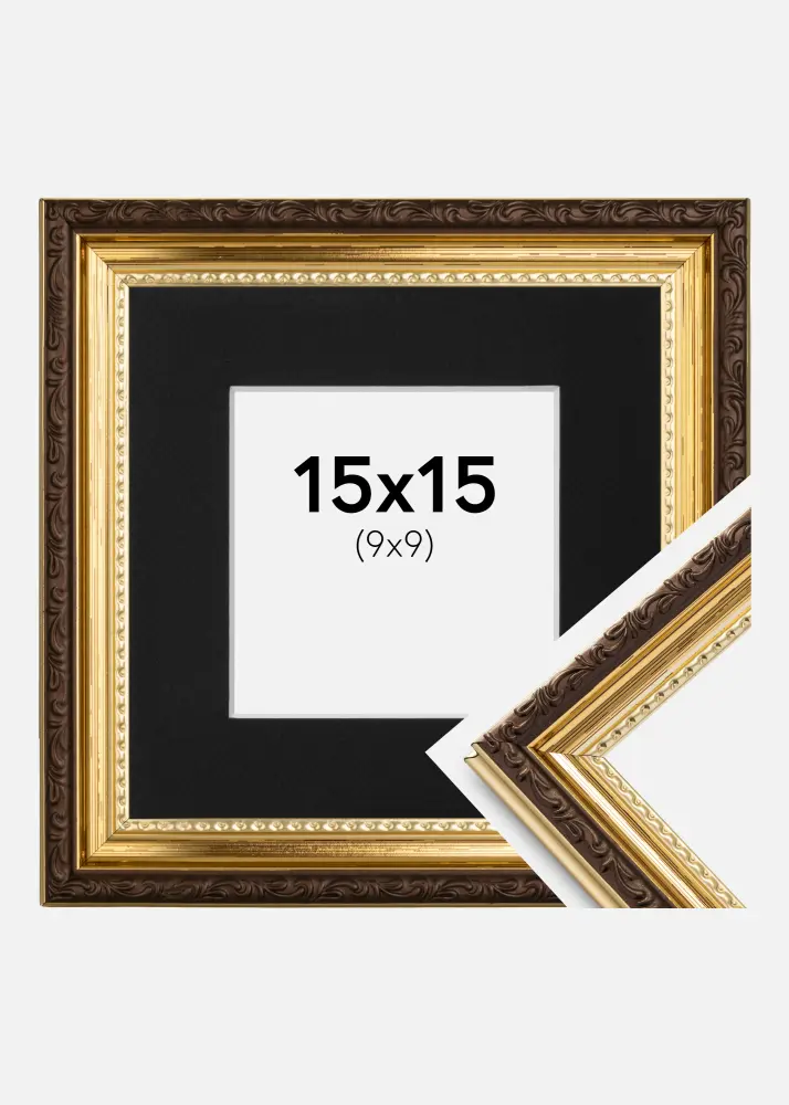 Moldura Abisko Dourado 15x15 cm - Passe-partout Preto 10x10 cm