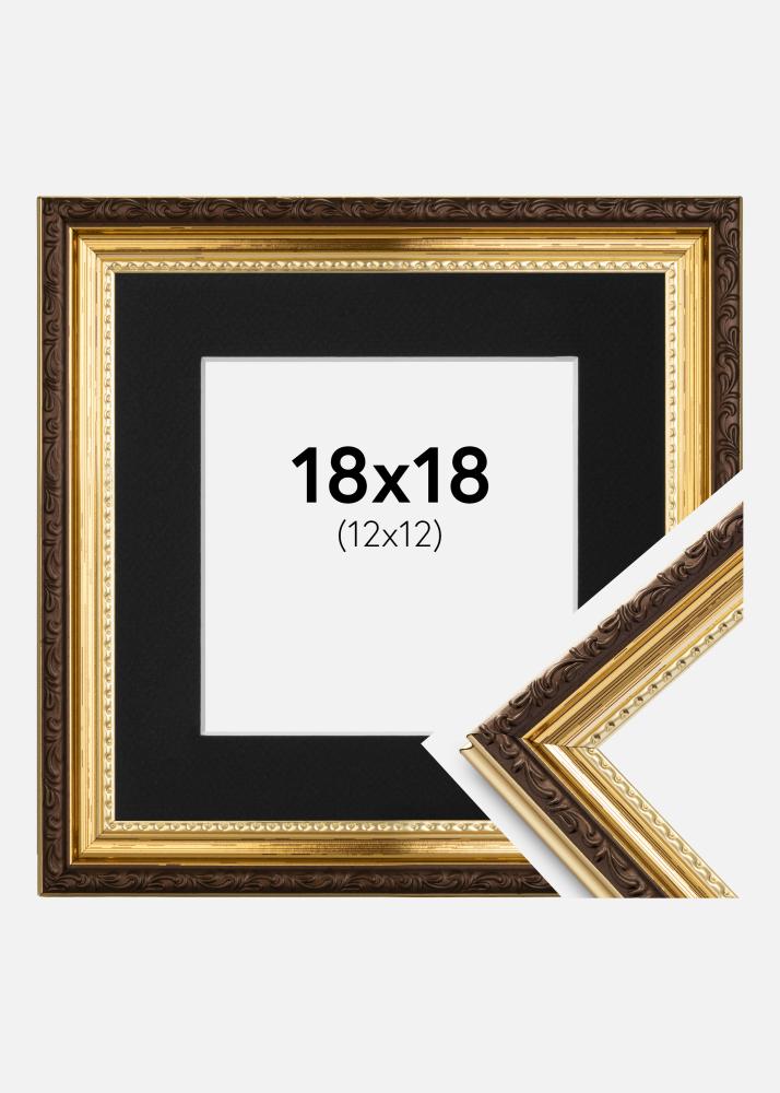 Moldura Abisko Dourado 18x18 cm - Passe-partout Preto 13x13 cm