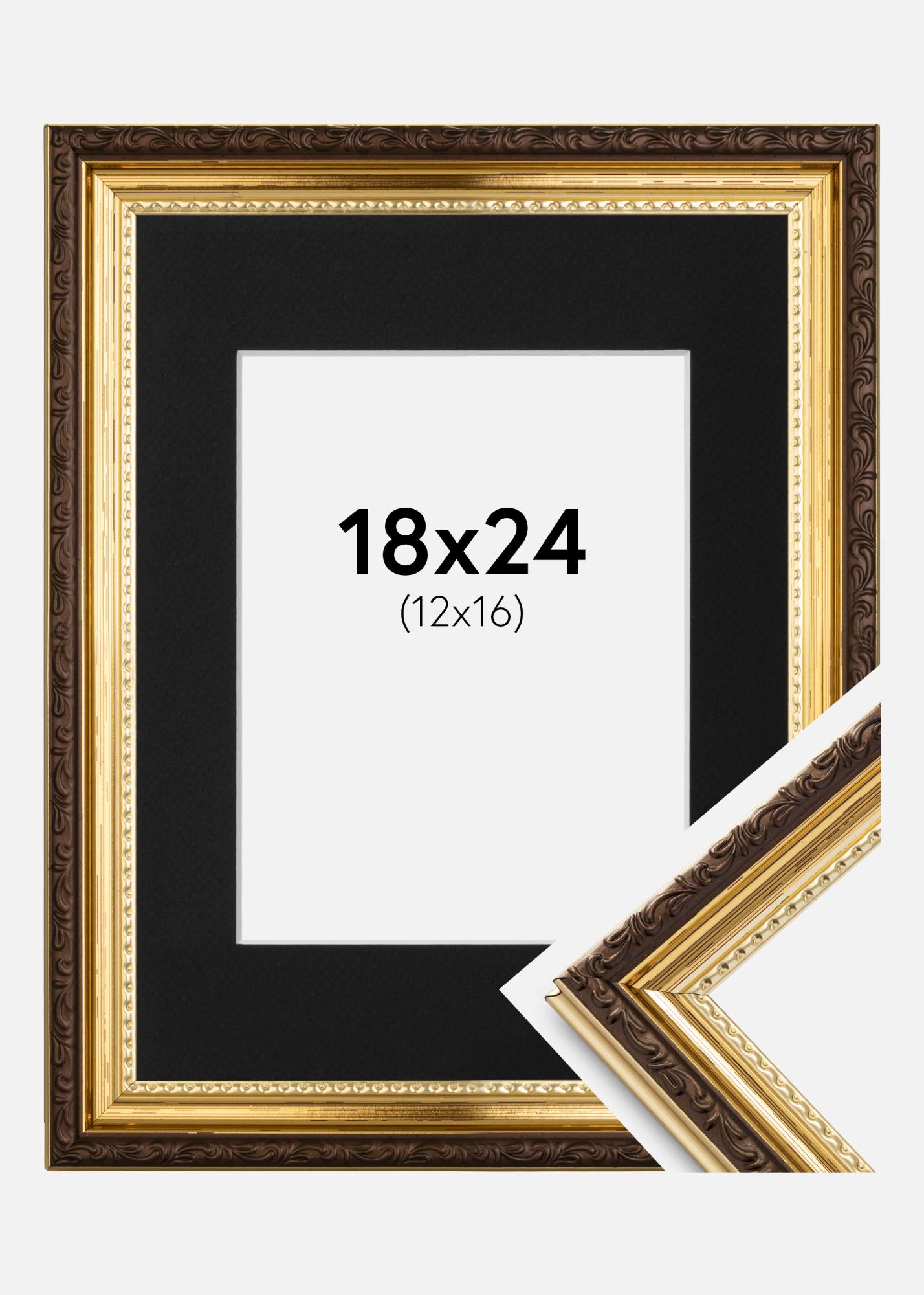Moldura Abisko Dourado 18x24 cm - Passe-partout Preto 13x17 cm