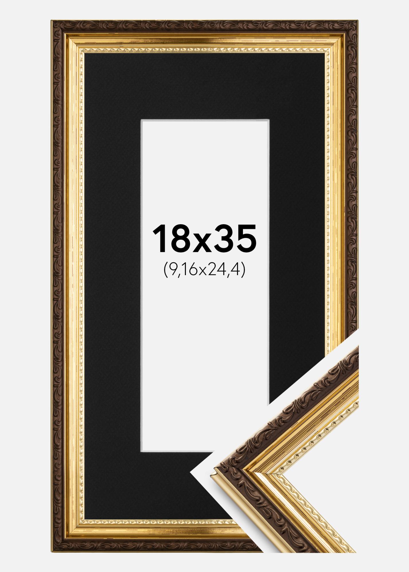 Moldura Abisko Dourado 18x35 cm - Passe-partout Preto 4x10 inches