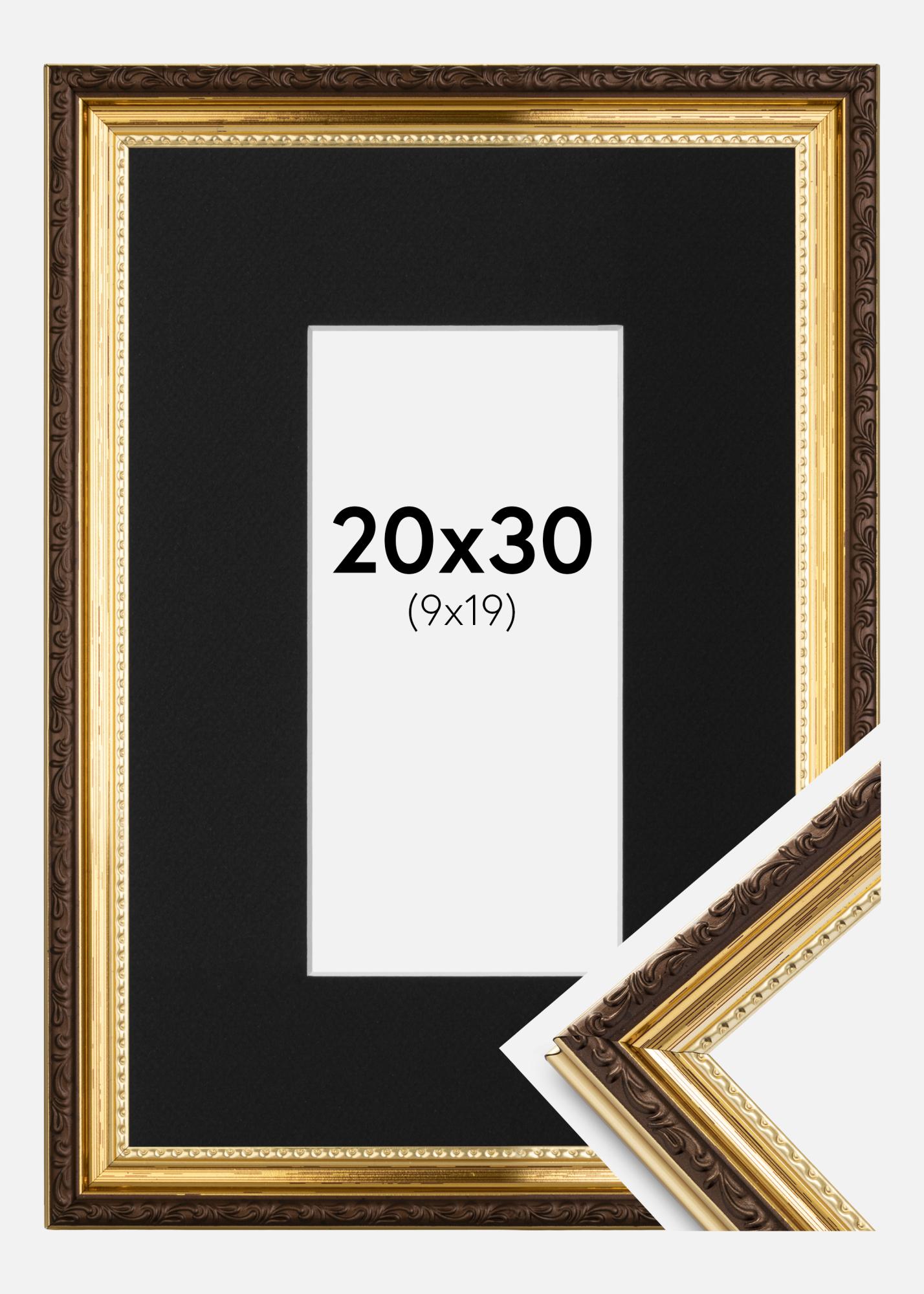 Moldura Abisko Dourado 20x30 cm - Passe-partout Preto 10x20 cm