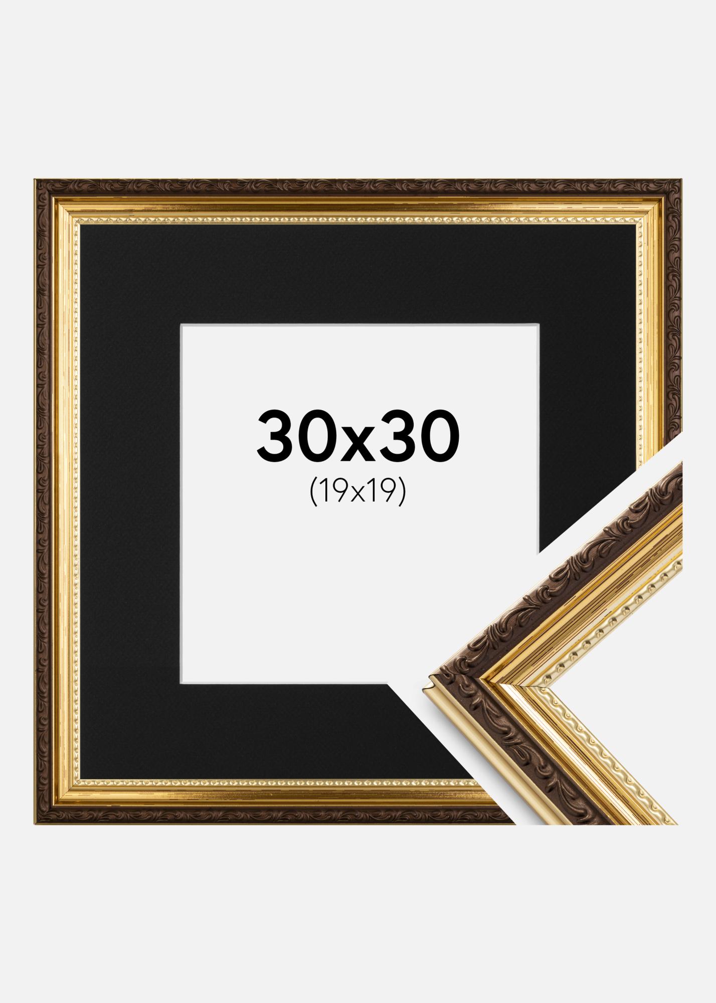 Moldura Abisko Dourado 30x30 cm - Passe-partout Preto 20x20 cm