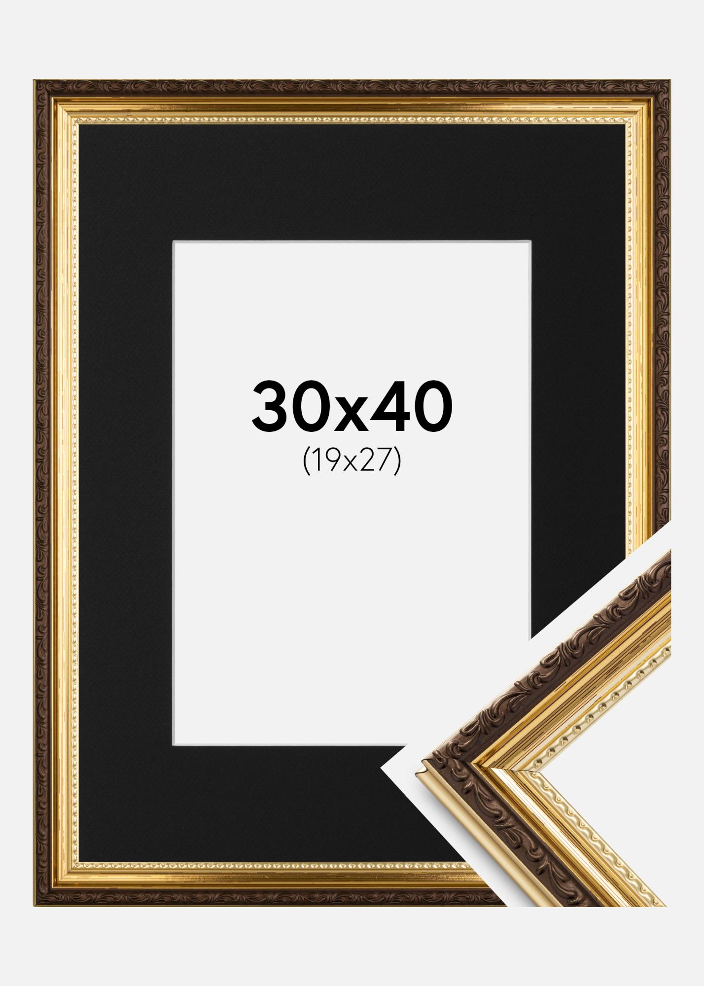 Moldura Abisko Dourado 30x40 cm - Passe-partout Preto 20x28 cm