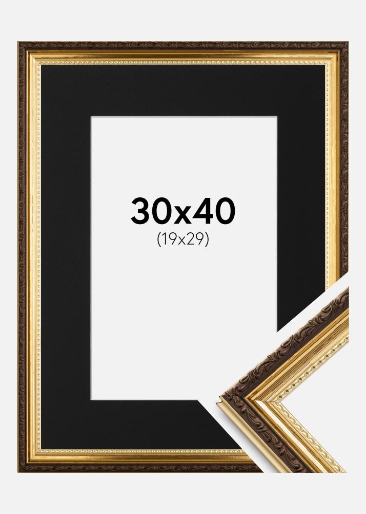 Moldura Abisko Dourado 30x40 cm - Passe-partout Preto 20x30 cm