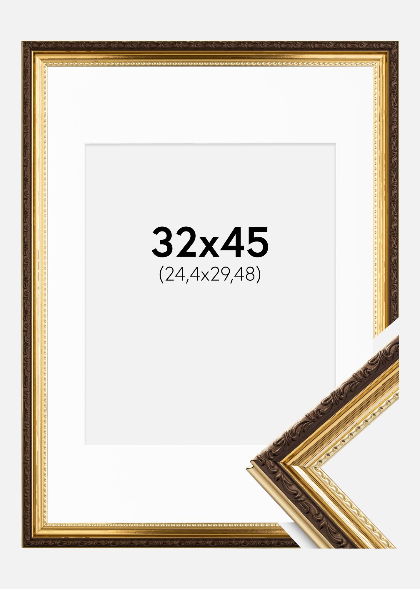 Moldura Abisko Dourado 32x45 cm - Passe-partout Branco 10x12 inches