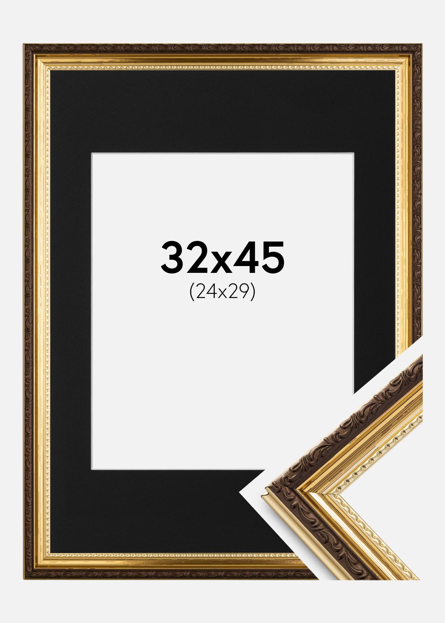Moldura Abisko Dourado 32x45 cm - Passe-partout Preto 25x30 cm