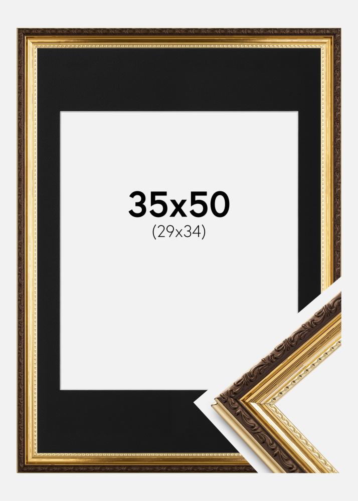 Moldura Abisko Dourado 35x50 cm - Passe-partout Preto 30x35 cm