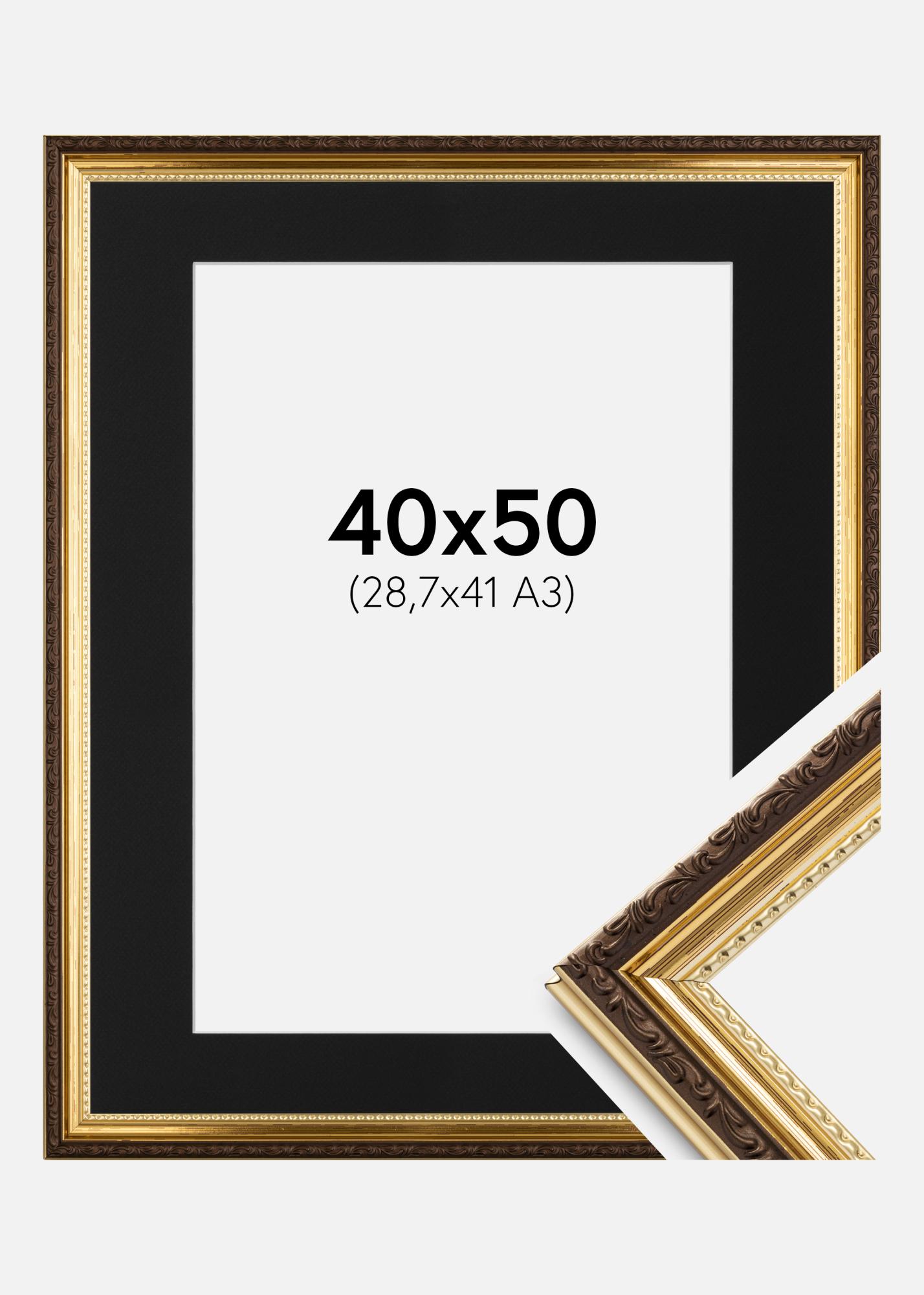 Moldura Abisko Dourado 40x50 cm - Passe-partout Preto 29,7x42 cm (A3)
