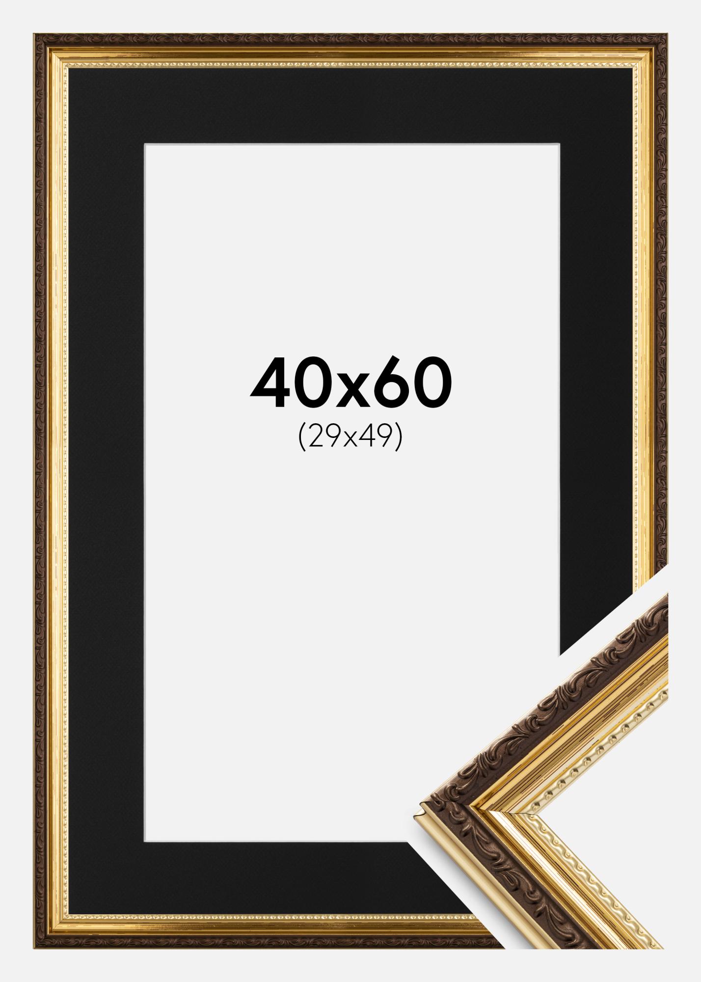 Moldura Abisko Dourado 40x60 cm - Passe-partout Preto 30x50 cm