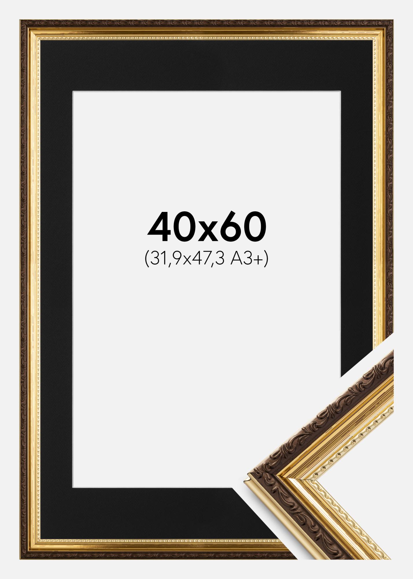 Moldura Abisko Dourado 40x60 cm - Passe-partout Preto 32,9x48,3 cm (A3+)