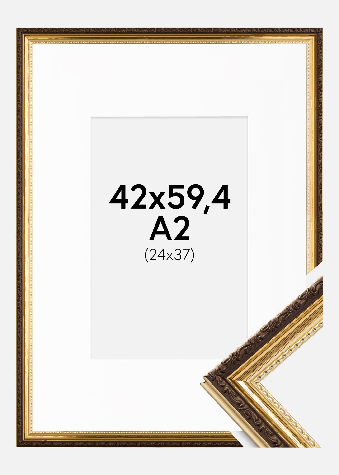 Moldura Abisko Dourado 42x59,4 cm (A2) - Passe-partout Branco 25x38 cm