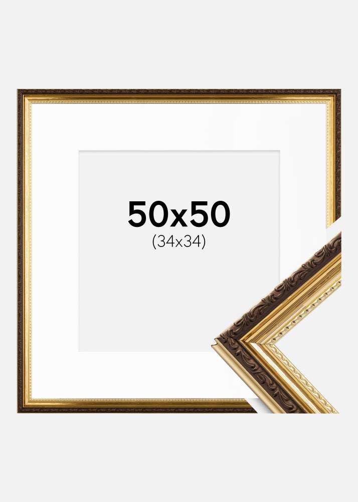 Moldura Abisko Dourado 50x50 cm - Passe-partout Branco 35x35 cm