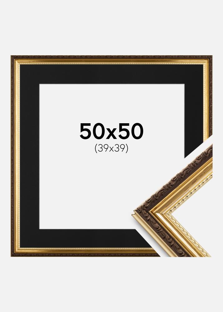 Moldura Abisko Dourado 50x50 cm - Passe-partout Preto 40x40 cm