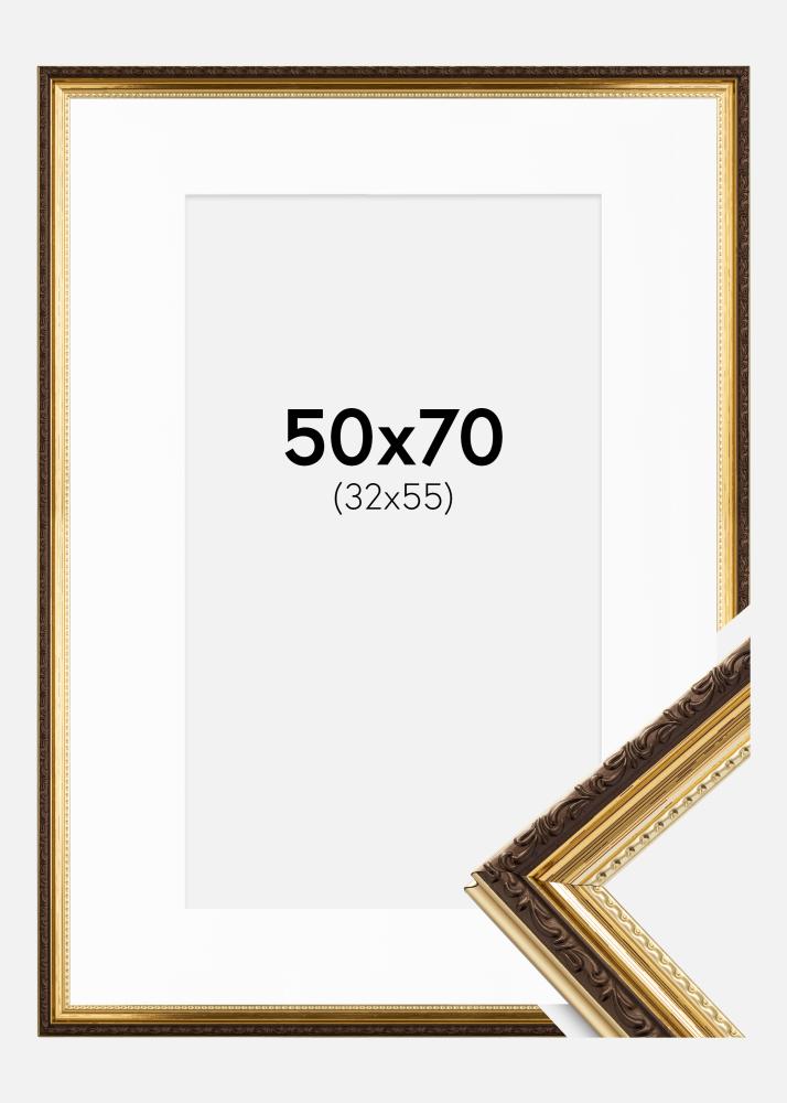 Moldura Abisko Dourado 50x70 cm - Passe-partout Branco 33x56 cm
