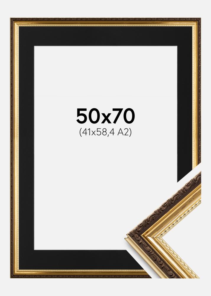 Moldura Abisko Dourado 50x70 cm - Passe-partout Preto 42x59,4 cm (A2)
