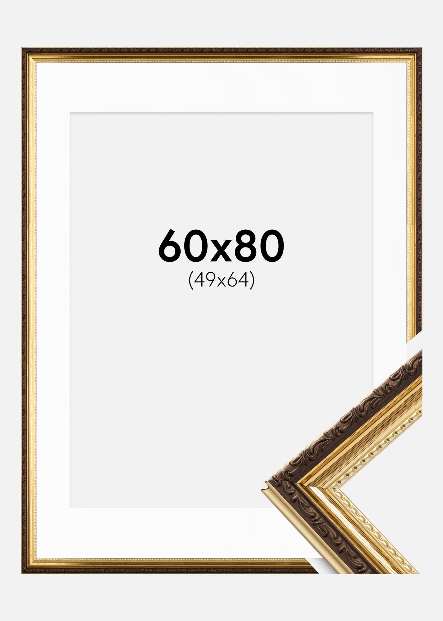 Moldura Abisko Dourado 60x80 cm - Passe-partout Branco 50x65 cm