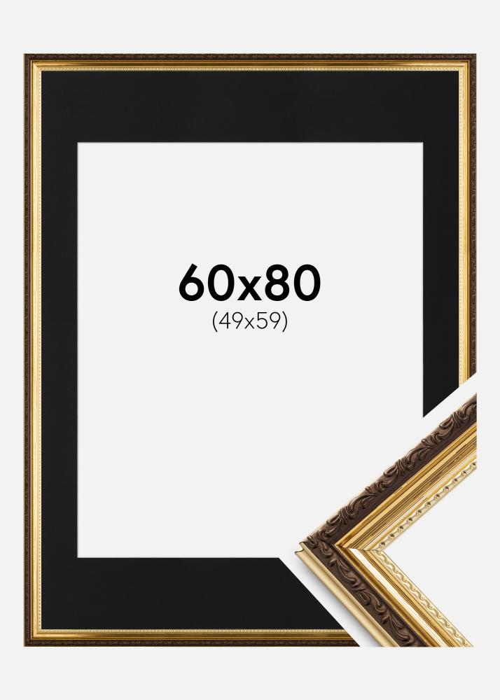 Moldura Abisko Dourado 60x80 cm - Passe-partout Preto 50x60 cm