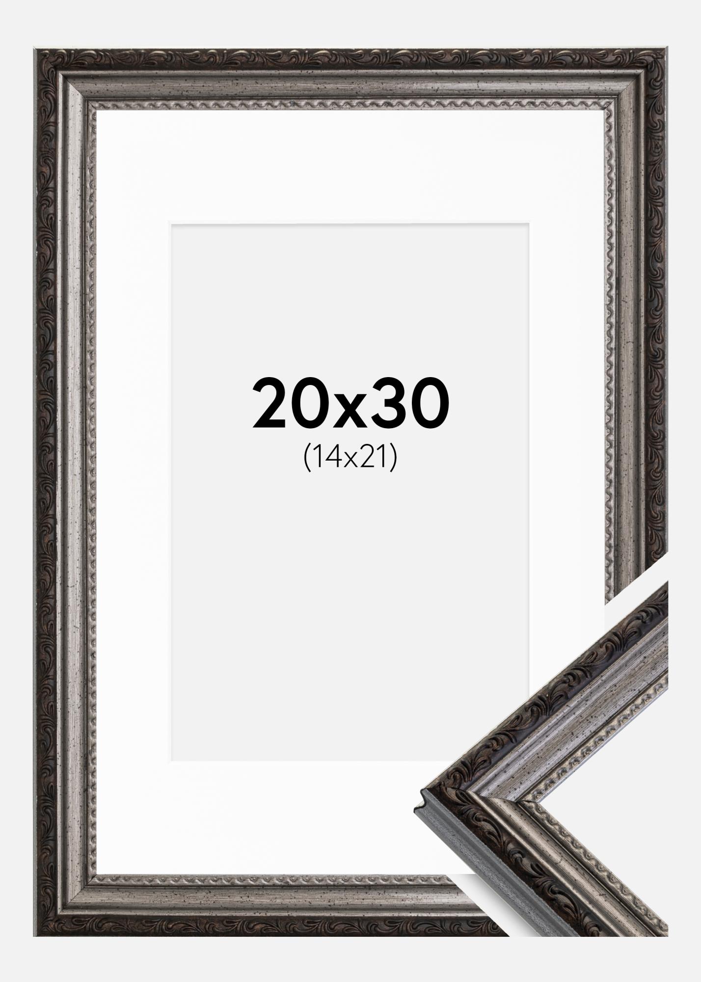Moldura Abisko Prateado 20x30 cm - Passe-partout Branco 15x22 cm