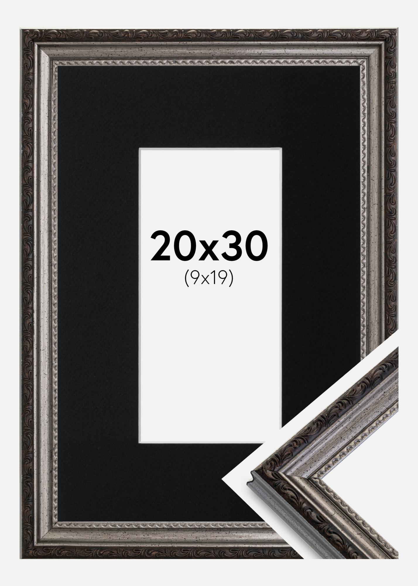 Moldura Abisko Prateado 20x30 cm - Passe-partout Preto 10x20 cm