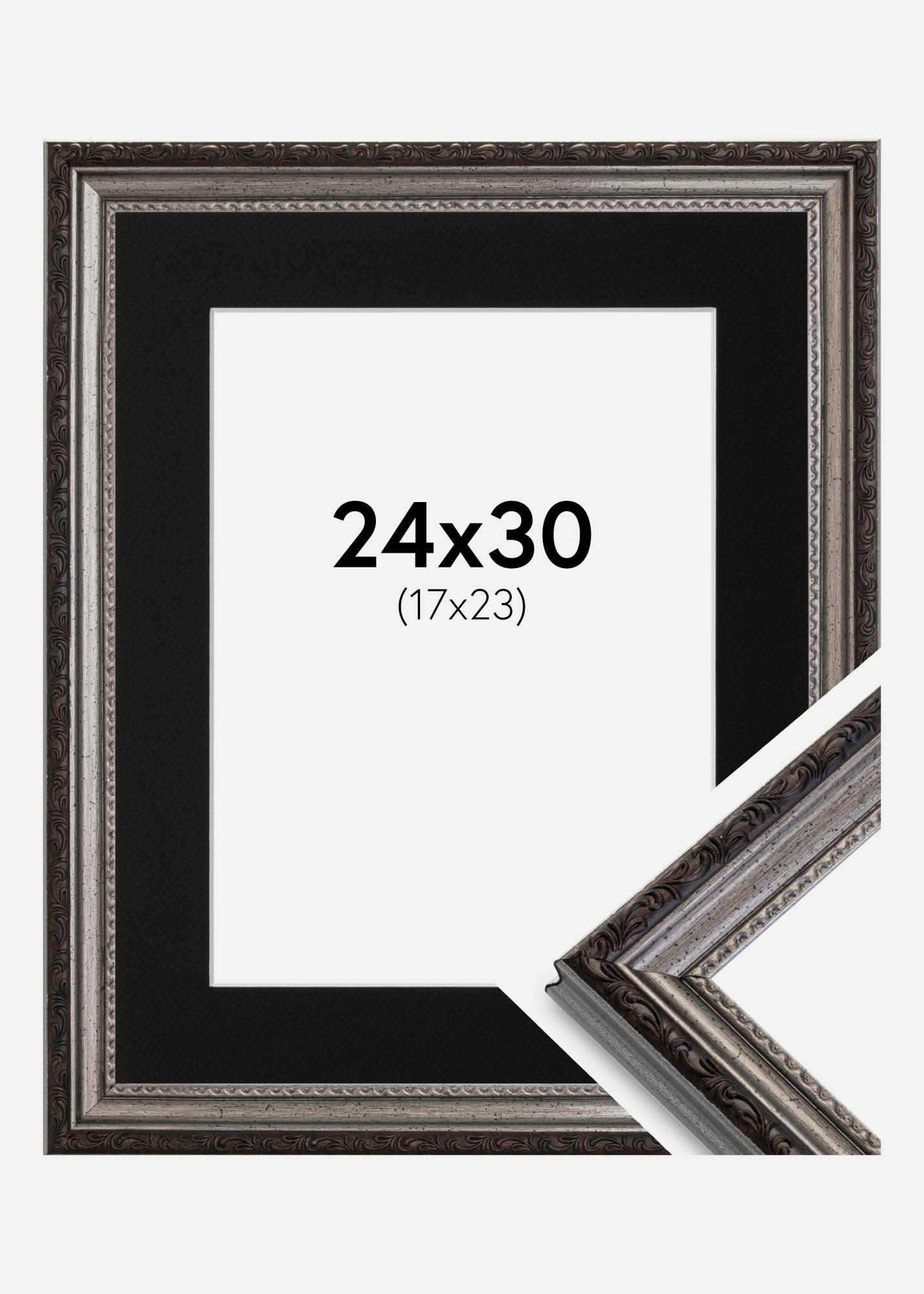 Moldura Abisko Prateado 24x30 cm - Passe-partout Preto 18x24 cm
