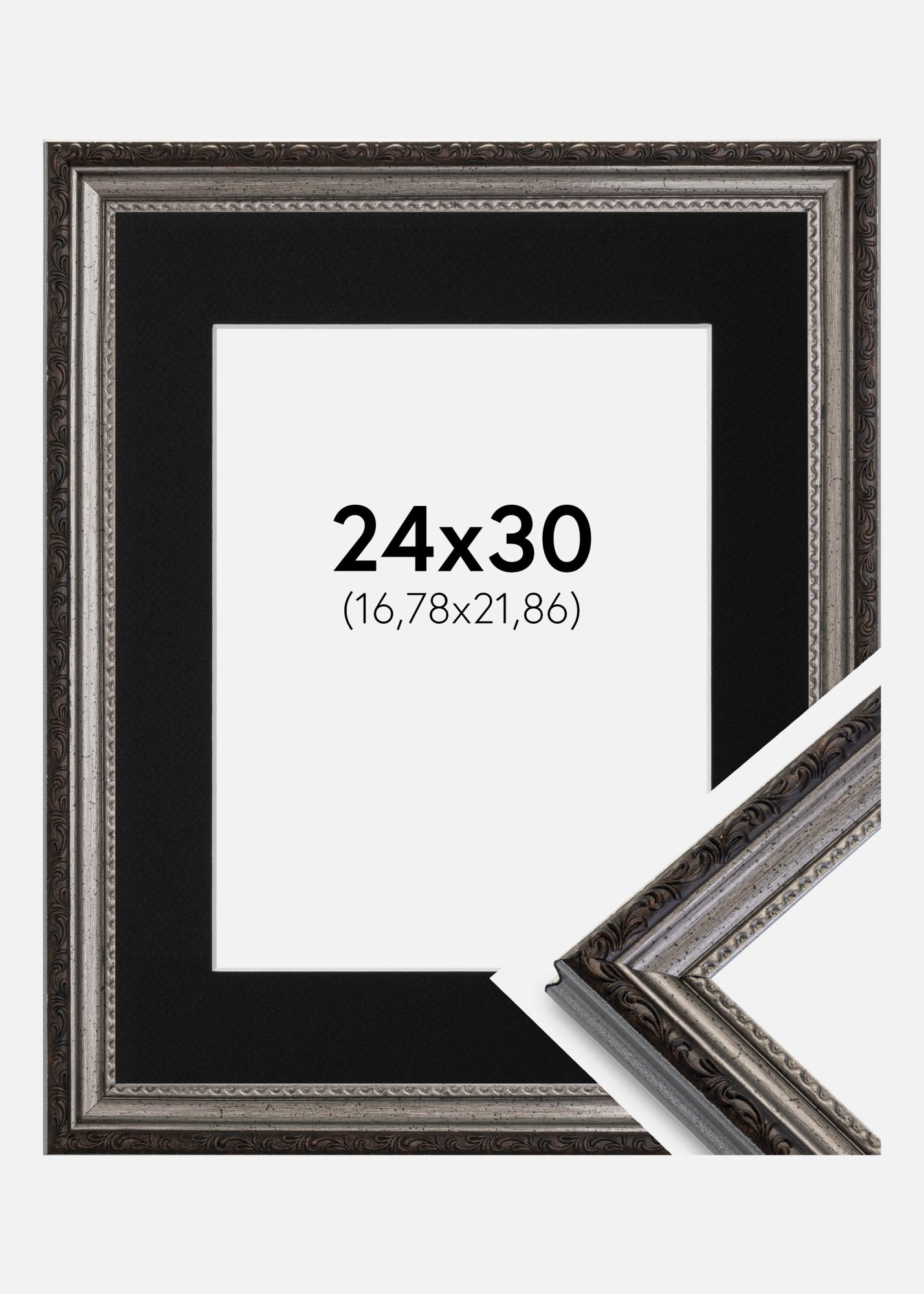 Moldura Abisko Prateado 24x30 cm - Passe-partout Preto 7x9 inches