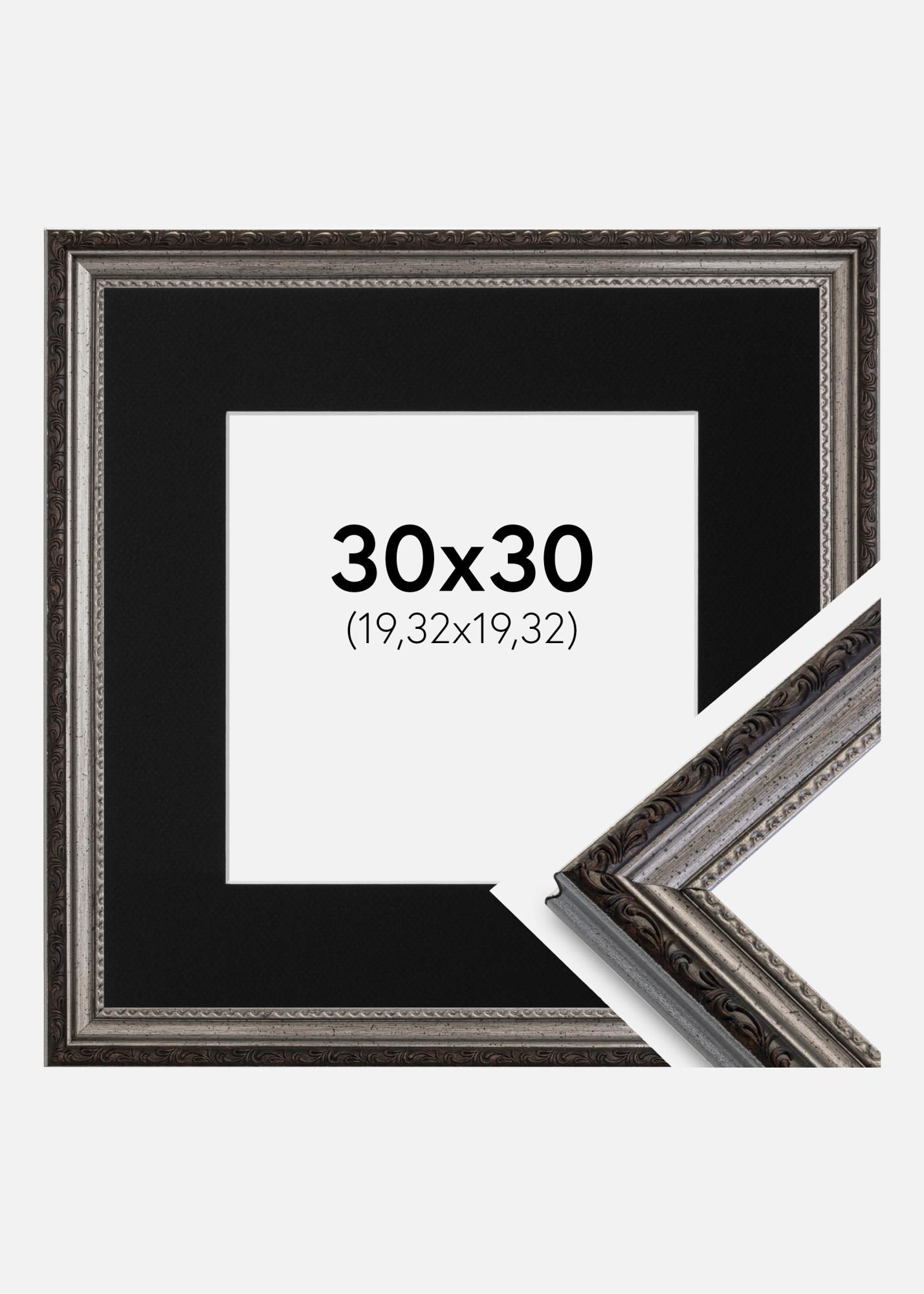 Moldura Abisko Prateado 30x30 cm - Passe-partout Preto 8x8 inches