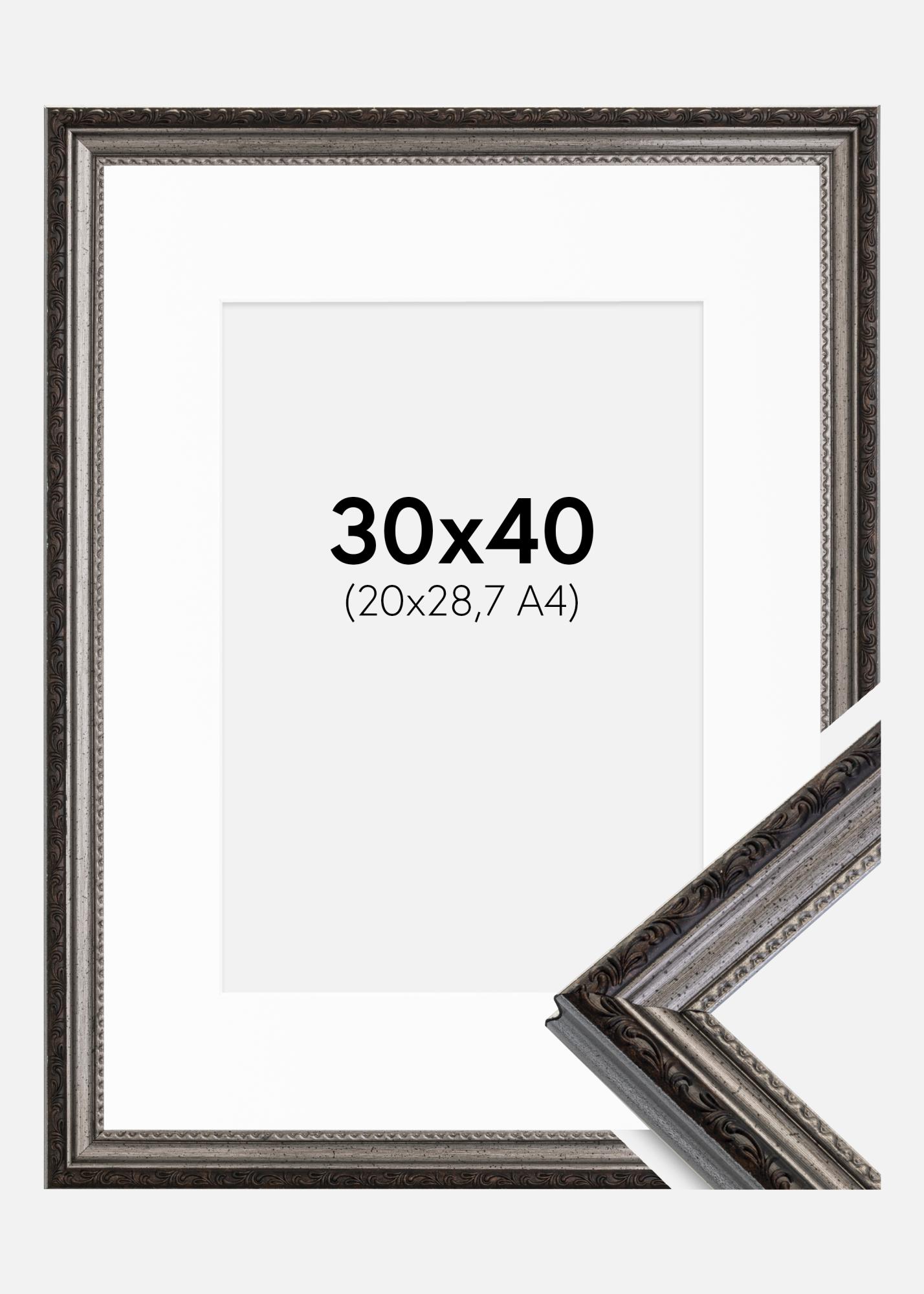 Moldura Abisko Prateado 30x40 cm - Passe-partout Branco 21x29,7 cm (A4)