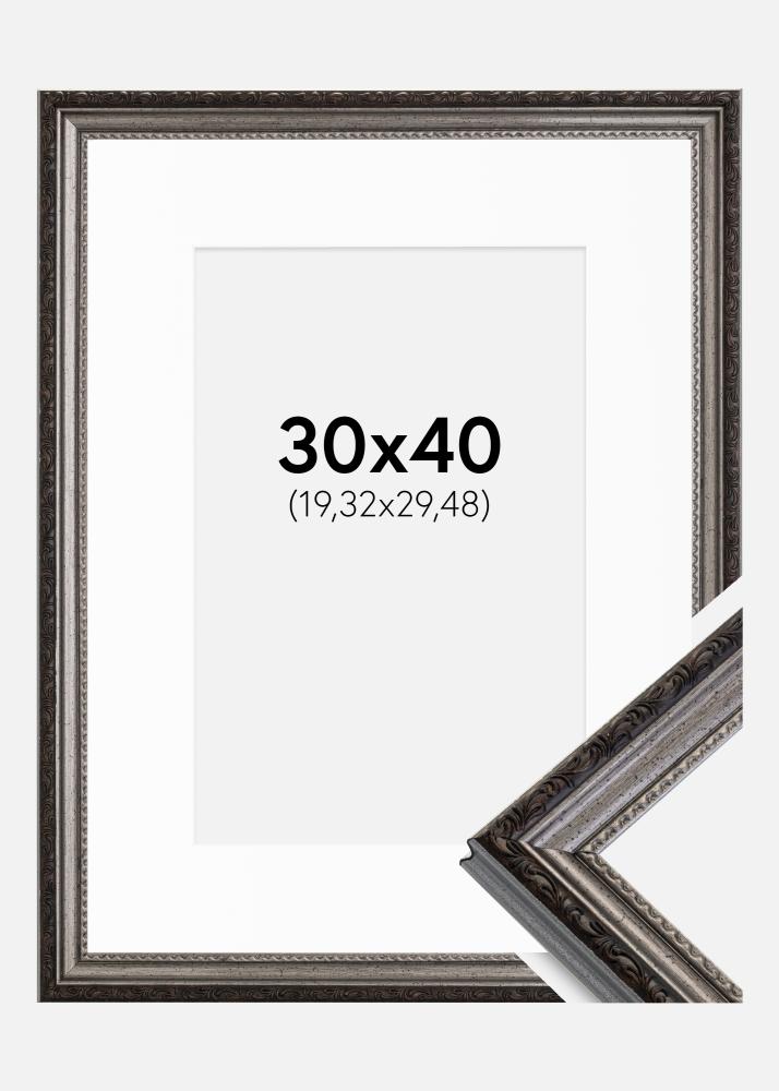 Moldura Abisko Prateado 30x40 cm - Passe-partout Branco 8x12 inches