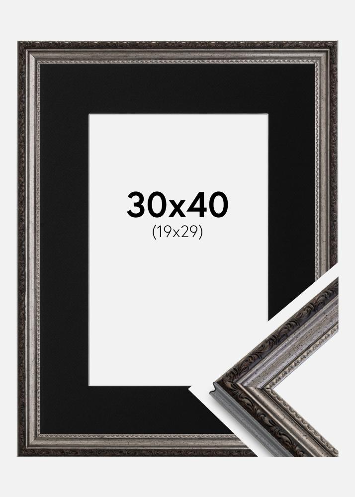 Moldura Abisko Prateado 30x40 cm - Passe-partout Preto 20x30 cm
