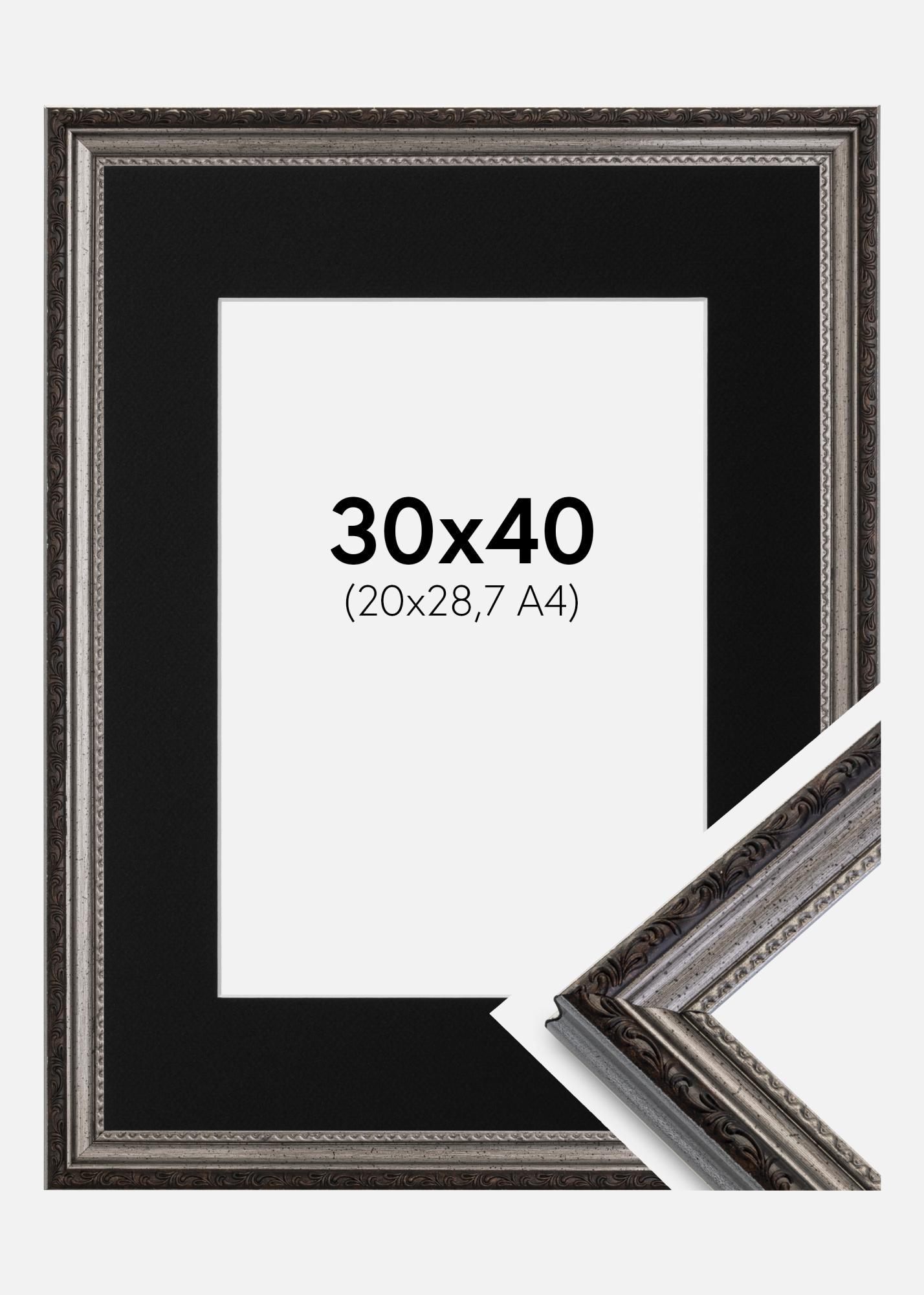 Moldura Abisko Prateado 30x40 cm - Passe-partout Preto 21x29,7 cm (A4)
