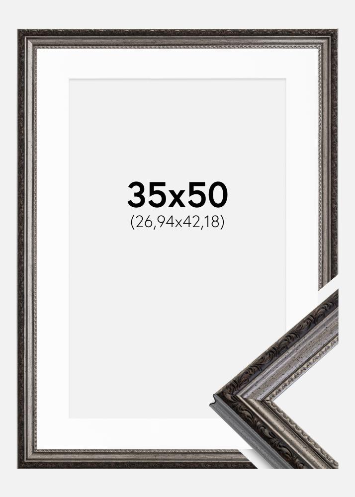 Moldura Abisko Prateado 35x50 cm - Passe-partout Branco 11x17 inches