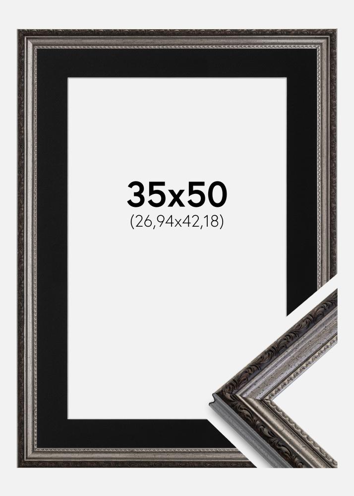 Moldura Abisko Prateado 35x50 cm - Passe-partout Preto 11x17 inches