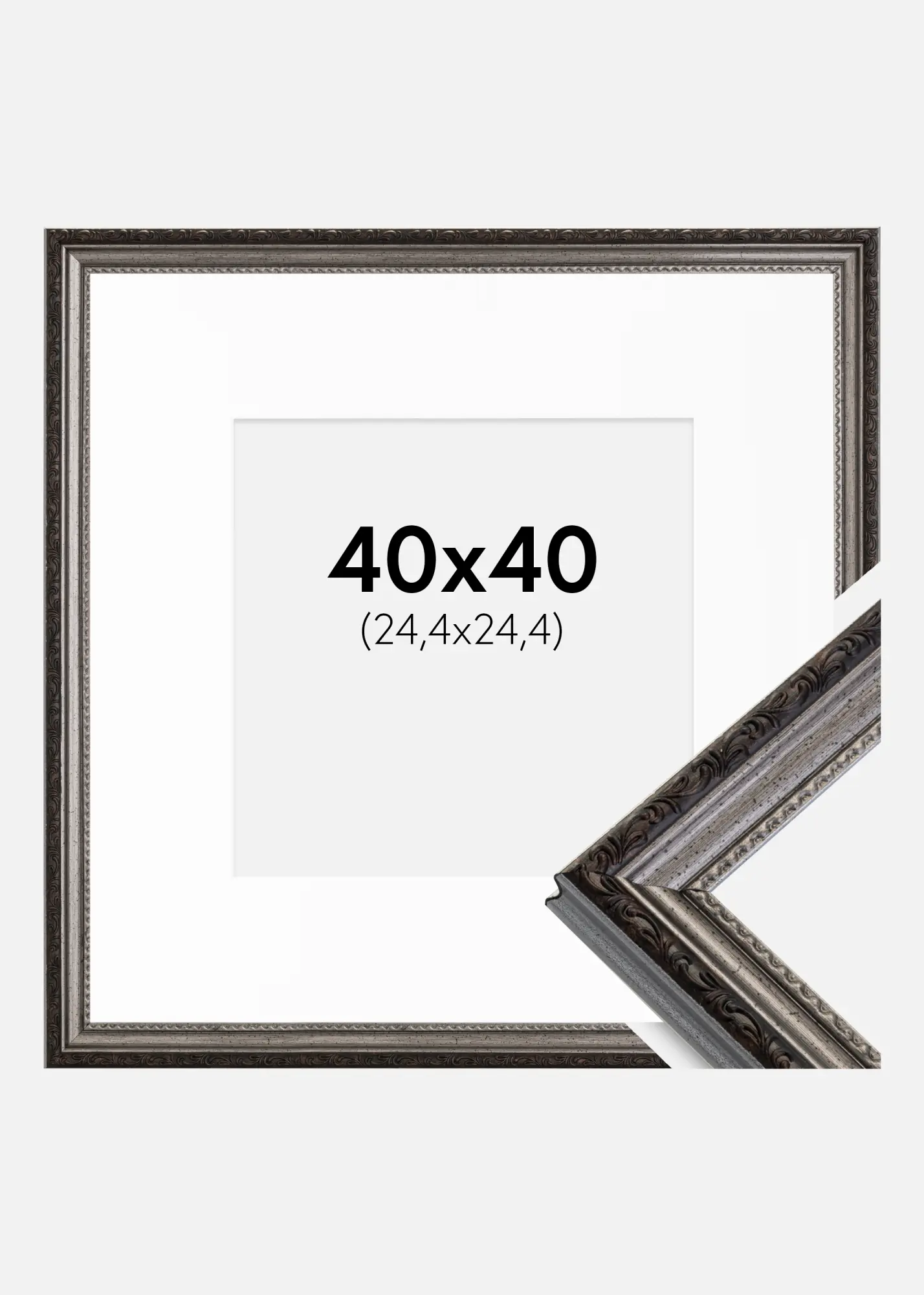 Moldura Abisko Prateado 40x40 cm - Passe-partout Branco 10x10 inches