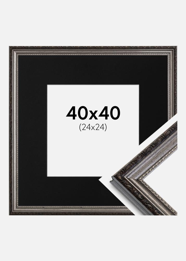 Moldura Abisko Prateado 40x40 cm - Passe-partout Preto 25x25 cm
