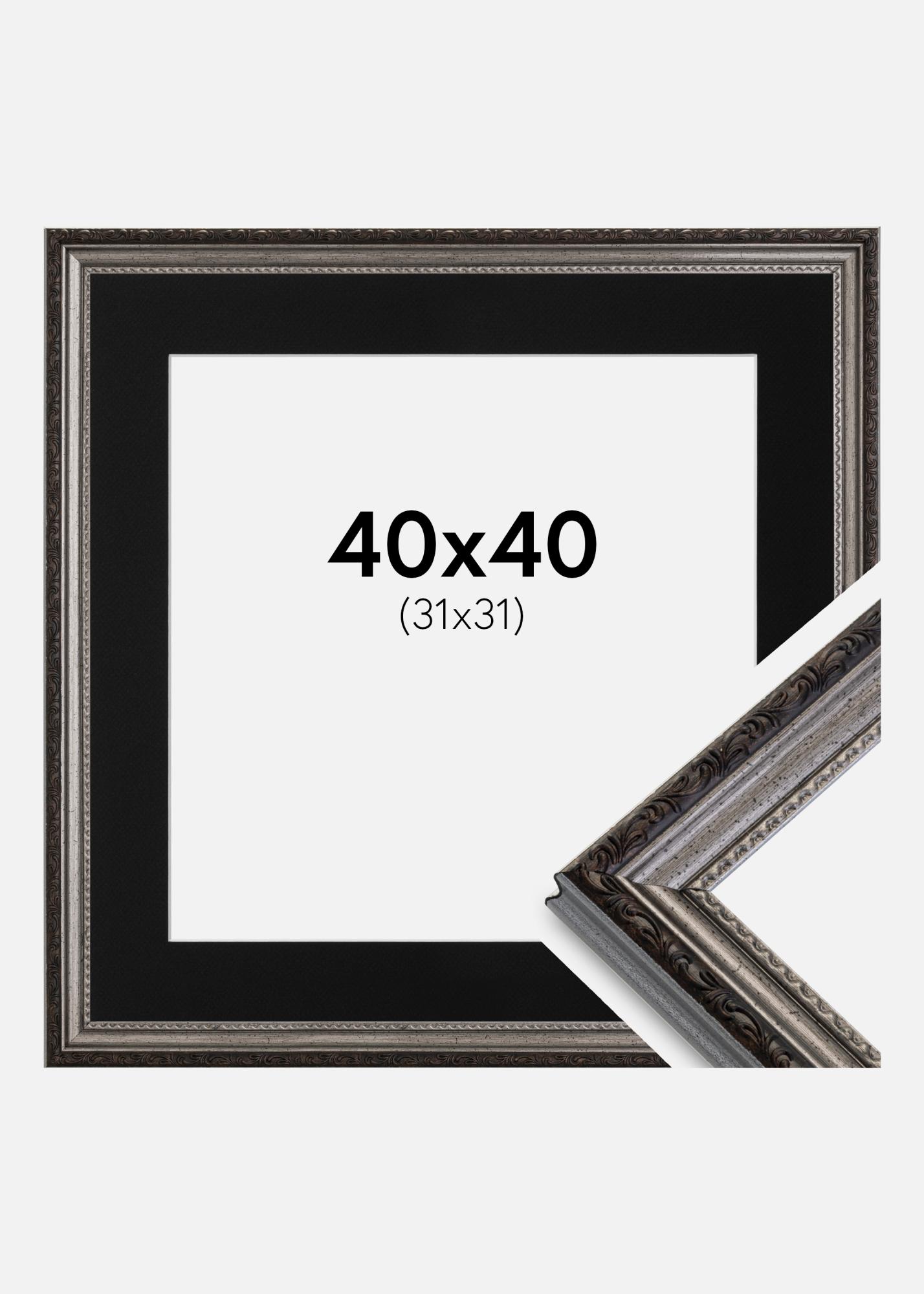 Moldura Abisko Prateado 40x40 cm - Passe-partout Preto 32x32 cm