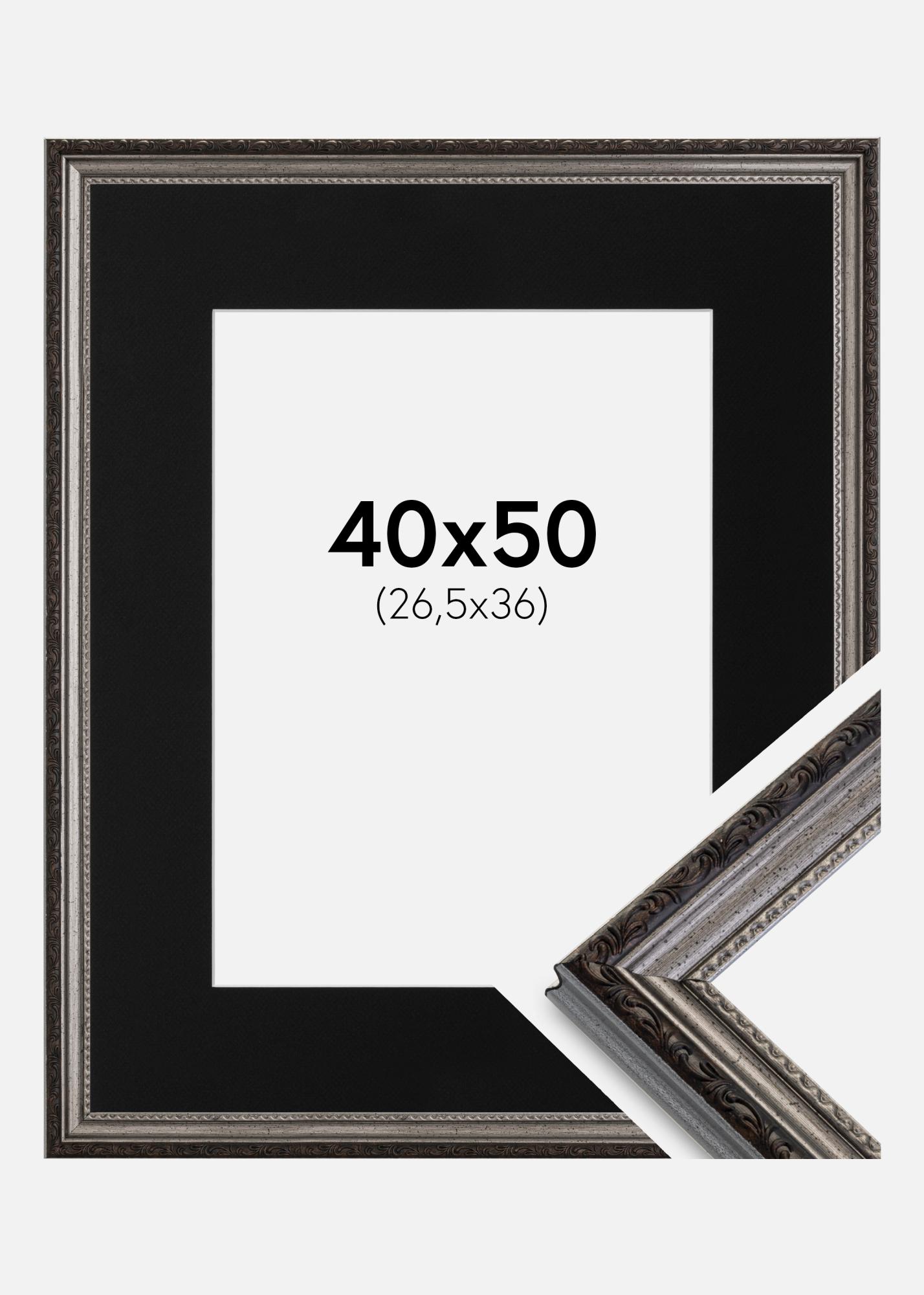 Moldura Abisko Prateado 40x50 cm - Passe-partout Preto 27,5x37 cm